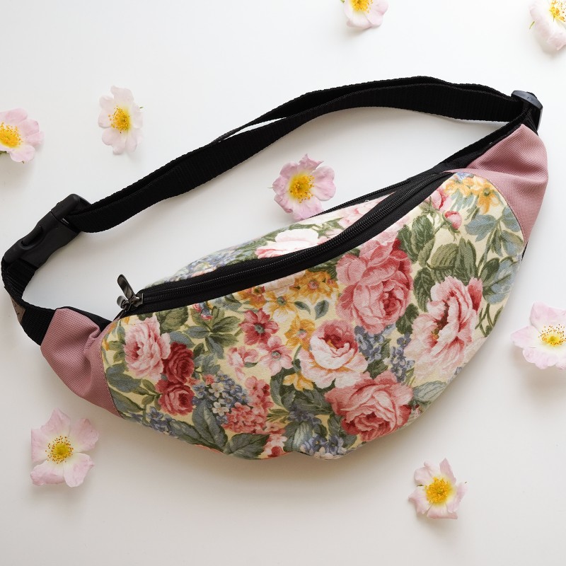 Praktyczna saszetka na biodra, uszyta z tkaniny bawełnianej i mocnej poliestrowej tkaniny w przepiękny print.