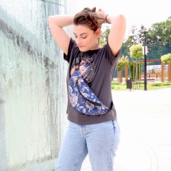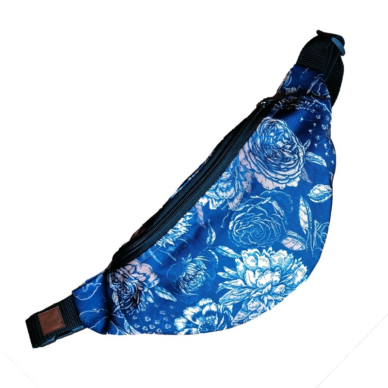 Praktyczna saszetka na biodra, uszyta z mocnej poliestrowej tkaniny w przepiękny print.